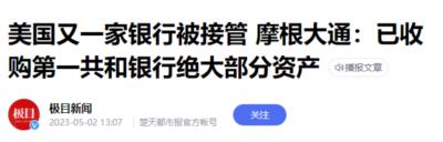 现在第一共和银行也破产了,而且被美国最大的银行摩根大通给收购了。
