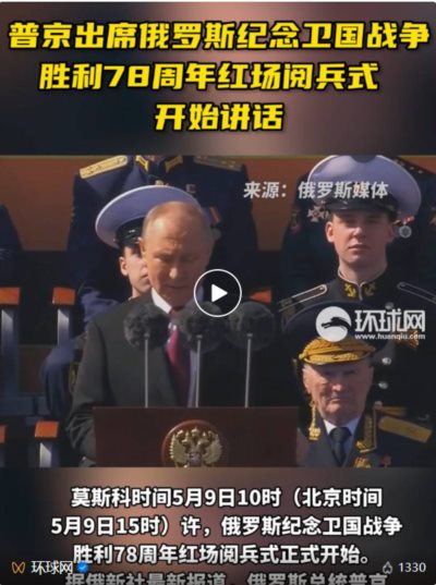 莫斯科时间5月9日10时(北京时间5月9日15时)许,俄罗斯纪念卫国战争胜利78周年红场阅兵式正式开始。据俄新社最新报道,俄罗斯总统普京当天出席阅兵式,开始讲话。