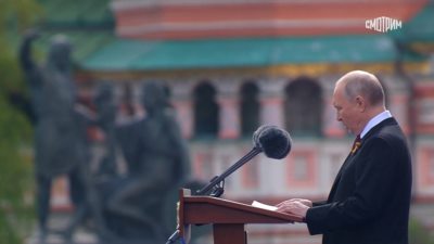 普京在胜利日红场阅兵式上发表讲话,演讲最后喊“为了胜利”和“乌拉”