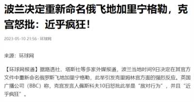 据环球网援引路透社和塔斯社的报道,波兰5月9日决定在其官方文件中,重新把俄罗斯在波罗的海旁边的飞地加里宁格勒,改为柯尼斯堡。