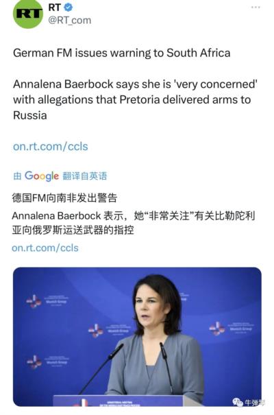 第三个细节,在美国高调指控南非的时候,有些西方国家也开始跟进。尤其是德国,德国女外长贝尔伯克还在说:柏林非常重视美国对南非的指控,问题很严重……
