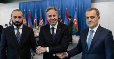 于是,5月1日,在布林肯的邀请下,亚美尼亚和阿塞拜疆两国外长抵达弗吉尼亚州,与布林肯举行三边会谈。