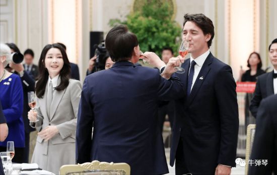 朔尔茨这次是先去日本,再去韩国;加拿大总理特鲁多是先去韩国,再去日本。他倒没去三八线,而是和韩国总统尹锡悦喝了个交杯酒。