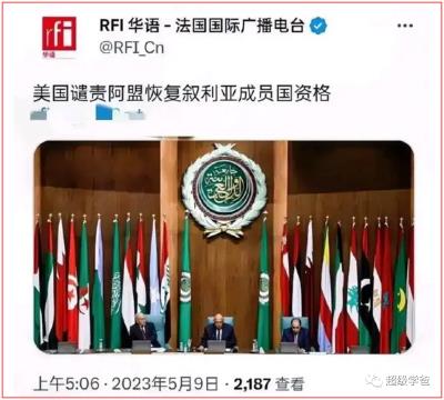 当初叙利亚被赶出阿盟是因为美国的压力。现在美国还没同意,阿盟就把叙利亚请回来了,且美国除了抗议没有任何表示,说明美国的令子在中东彻底不好使了。