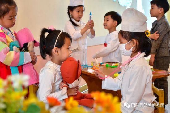 在敬爱的金正恩同志的深切关怀下,孩子们无忧无虑地生活。朝鲜的未来与孩子们明亮的笑声一道无限辉煌灿烂。
