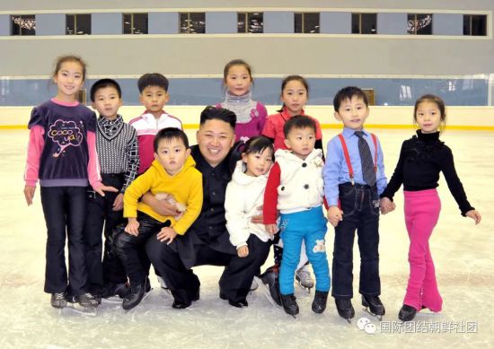 3.敬爱的金正恩同志视察人民露天滑冰场,和孩子们在一起。主体 101(2012)年 11 月