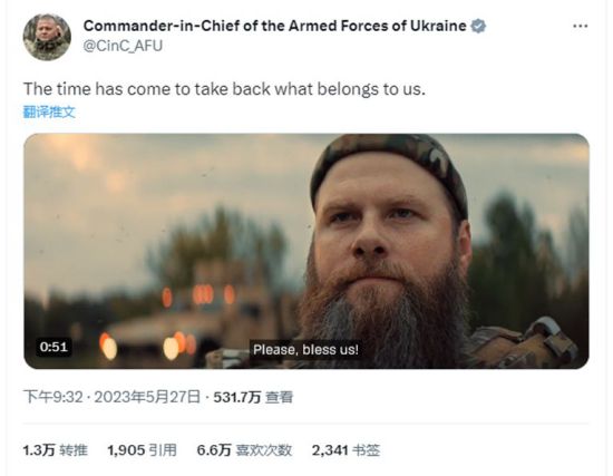 第一个消息,27日,乌克兰武装部队总司令瓦瓦列里·扎卢日尼时隔25天,在推特上更新一段长1分4秒的视频,配文为 “现在是时候夺回属于我们的东西了”。