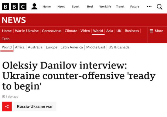 根据BBC的说法,丹尼洛夫不愿透露“大反攻”的具体日期,但表示可能会在“明天、后天或一周内”开始进攻,并从俄罗斯手中夺回领土。