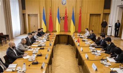 5月17日中国特使李辉在基辅与乌克兰外长库列巴举行会晤