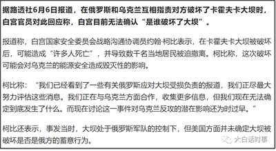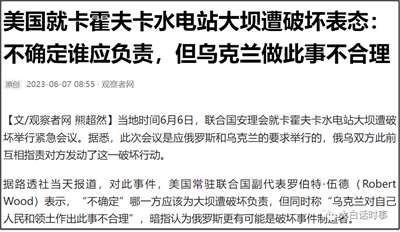 结果,反倒平时会第一时间跳出来指责俄罗斯的美国,这次倒是比较谨慎的说“不确定”哪一方应该为大坝遭破坏负责。