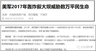 2017年,美国轰炸了叙利亚最大的水坝,就险些造成数万叙利亚平民死亡,而美国军方对此自然是否认,还甩锅给极端组织。