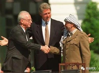 1995年9月28日,克林顿促成阿拉法特和以色列总理拉宾在白宫签署了《奥斯陆协议》,西方媒体一片欢腾,对美国歌功颂德。