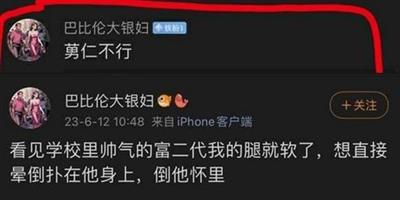 再比如某XXN,一边辱骂中国男人“不行”,一边却又一看到富二代腿就软,就想直接扑人家身上、倒人家怀里。