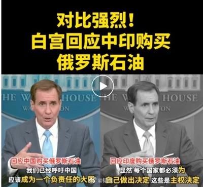 俄乌战争爆发之后,盎撒国家开始制裁俄罗斯。中国按照合同继续购买俄罗斯的石油,盎撒就扣给中国一顶所谓的“不负责任的大国”帽子。可是对于印度从俄罗斯购买了远比中国多的石油,甚至还直接原地加价转卖给欧洲,盎撒却改口了,声称那是“国家主权决定”。