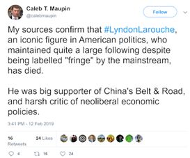 政治创新中心在理论上带有深刻的折衷主义烙印,并混杂了各种理论内容。莫平甚至堕落到公开支持右翼人物的立场和政策的程度,他曾借鉴林登·拉罗齐的理论并支持拉罗齐运动都证明了这一点。政治创新中心践踏了所有革命原则,与自由党和人民党领导的“暴力反抗战争机器”(RAGTWM) 联盟结盟。席勒研究所(Schiller Institute)是黑尔佳·策普·拉罗奇(Helga Zepp-LaRouche)(林登·拉罗齐的妻子)与莫平和“暴力反抗战争机器”等人共同创立的国际智库,此智库不容小觑。席勒研究所活跃于世界各国,致力于建立起多极世界的倡议,尤其是通过中国“一带一路”倡议。