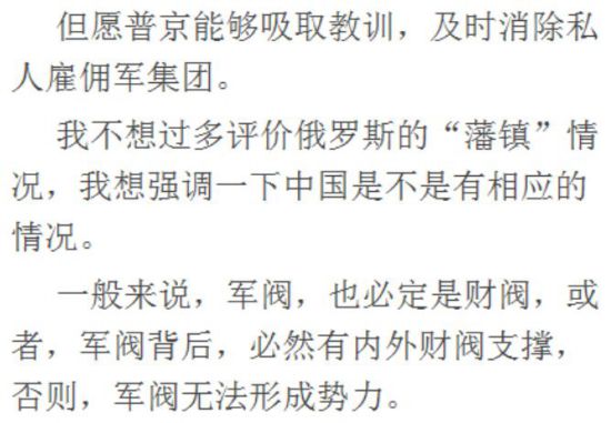 据传,俄罗斯正在乌克兰前线作战的雇佣军瓦格纳军团发生兵变,原因是国防部长绍伊古和总参谋长戈拉西莫夫要求把瓦格纳军团的指挥权收归国防部和总参,熟悉中国历史的人,马上想到此之谓“削藩”及“清君侧”。瓦格纳雇用军团,用中国历史上的术语来说,相当于军阀。而军阀在一定程度上,并不属于政权掌握的军队,有很强的独立性,有可能帮助中央政权,也有可能随时反对中央政权。安史之乱之前,唐朝实行节度使制度,全称是“节制度支黜置大使”,镇守边塞的将领被称作节度使,既管军、又管民、且管钱粮,权势极大。安史之乱,实质上就是节度使制度遗留的祸根,但唐在平定安史之乱过程中,不但没有削弱节度使制度,而且还加强了这一制度。安史之乱平定后,节度史形成藩镇军阀割据,中央莫奈其何,导致唐朝中央政权的极大削弱,直到灭亡。