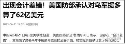 那62亿美元最早来源是说“美国国防部6月20日表示,因存在“会计差错”,其高估了过去两年中援助乌克兰的武器价值,较实际价值多计算了62亿美元。”