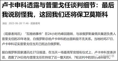 不过,幸好最终普利戈任和卢卡申科达成协议,最终让瓦格纳部队掉头回营,这件事情就这样结束了。
