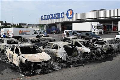 尽管出动了这么多警察,一个晚上的时间,几十座城市的抗议者还是烧毁了2000辆汽车,毁坏了近500座建筑物。搞成这个样子,马克龙提前离开在布鲁塞尔举行的欧盟峰会返回法国,还推迟了对德国的访问,整天开会要求各地赶紧控制局势恢复秩序,法国各地的音乐节、庆典也一个接一个取消,现状甚至引发了人们对未来2024巴黎奥运会安全前景的担忧。
