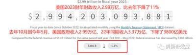 美国财政收入跟我国不同,主要依靠个人所得税。就业人数增加,工资增加,那么美国政府税收入一定是增加的。美国上半年就业形式如此火热,就业人数和工资收入都在快速上涨,但是美国从去年十月到今年五月联邦收入仅2.99万亿,比去年同期的3.37万亿,少了3800亿美元,同比下降了11%。税收不像统计数字可以粉饰,似乎显露出一点马脚。