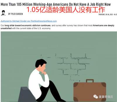 实际上美国的失业率统计只统计所谓“有就业意愿”的人,因此失业人口只有区区609万人,但美国有高达9980万的适龄工作人口没有工作,却因为“没有就业意愿”而排除在失业统计之外。所以美国实际上没有工作的人口高达1.05亿。