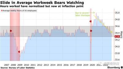 美国劳动者平均每周工作时长不断下降,似乎证明新增的岗位大多是兼职零工