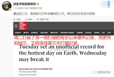 最近三天,是地球12万年来最热的三天。西伯利亚第一次录到38度的高温,南极温度比历年平均高了4.5度,整个华北变成巨大的蒸笼。