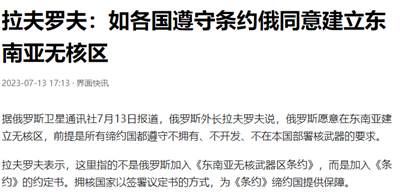 拉夫罗夫呼吁“所有国家共同努力,为实现东南亚无核化的目标而努力”。其实就是告诉全世界,美国有可能让东南亚变成“有核”之地。