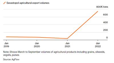 根据统计,自22年3月份,克里米亚的粮食出口量是平时的十倍多。战争开始最初几个月,粮食出货量甚至达到了平时的50倍。其中属于RIF的超过三分之一。