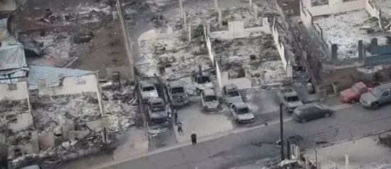 烈火腾空,浓烟蔽日,树木、建筑、纷纷化为灰烬,毛伊岛西部有三百多年历史的旅游名镇拉海纳,直接被烧成一片废墟……人们在烈火和热浪中纷纷跳海,至今已有90多人死亡,1000多人失踪(实际无法统计,很多人已经浮尸海上了)。