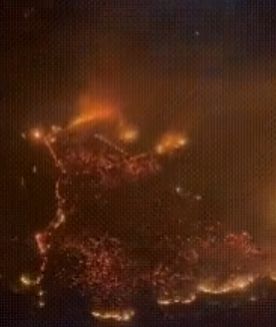 大火肆虐后的城镇,就像是被美国燃烧弹洗过地的地方。