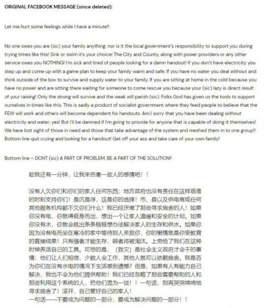 这是美国人的传统,毕竟几年前美国雪灾的时候,他们的市长就公开说:“救灾是社会主义国家才会干的事情,作为美国人,自己管自己,不要当哭哭啼啼的废物和巨婴”。