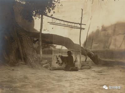 纳瓦霍毯子织布工,摄于1905年,地点亚利桑那州或新墨西哥州。摄影师为爱德华·柯蒂斯(Edward S. Curtis),现藏于美国国家人类学档案馆,史密森尼学会。