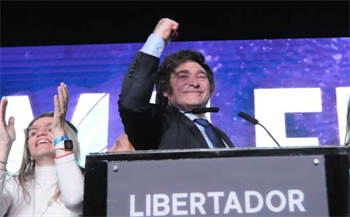 米莱在上周日庆祝初选胜利