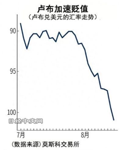 今年夏天,俄罗斯卢布表现较为疲软。8月14日,卢布兑美元汇率一度跌破1:100。