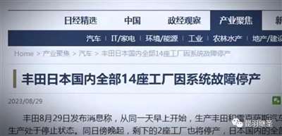 8月29日,丰田日本国内全部14座工厂因系统故障停产。