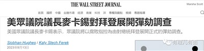 无论是从个人利益还是党派之争出发,麦卡锡都有足够的理由提出弹劾拜登的议案,这将是他近期“拿得出手”的政绩之一。