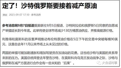 9月5日,沙特阿拉伯和俄罗斯“不约而同”地把自愿减产延长到今年底。
