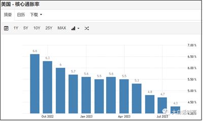 美国8月的核心通胀率是4.3%,比期上个月4.7%,有小幅回落。