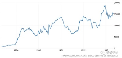 1970年至2000年委内瑞拉外汇储备变化(单位:百万美元)