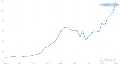 1960年—2000年委内瑞拉GDP变化(单位:十亿美元)数据来源:世界银行
