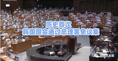 第二件事,棒子国总理韩德洙罢免建议在国会通过。