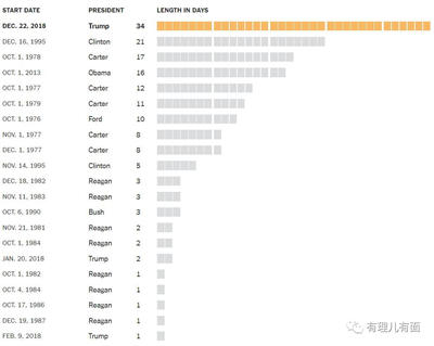 但在美国,政府关门可不是什么稀罕事儿,因为美国历史上早就有“关门史”了,对他们来说见怪不怪了。