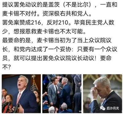 也就是说麦卡锡有三道保险,个别议员不可能把他拉下马。