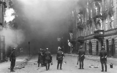 1943年4月19日,犹太逾越节前夕,党卫军向隔离区的犹太人发出最后通牒,被拒绝后,党卫军和警察部队进入犹太人隔离区进行血腥清洗,犹太人拿起武器奋起抵抗,这就是历史上著名华沙犹太人隔离区大起义。