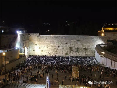 第二圣殿被毁后,西边留下了一段城墙,就是后来的“哭墙”,这是犹太人的圣地,每天都有人来拜拜。