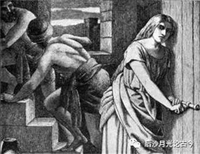 于是,大利拉趁他搞得精疲力尽睡着时,将其头发剪掉。