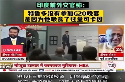 特鲁多对印度搞暗杀不满,甚至跑到人家首都反对。莫迪并没有惯着他,以发现DP为由,扣留特鲁多两天。但对外称飞机故障,等到特鲁多走了。印度人就有文章可做了,针对网媒认为特鲁多没参加G20晚宴一事,印度一个前外交官称“特鲁多磕药了,所以无法出席”。