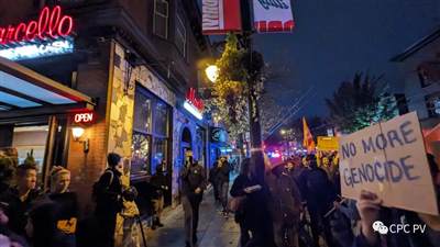 我们呼吁加拿大政府谴责以色列政府正在进行的种族灭绝,并要求监督联合国决议的执行情况,尊重巴勒斯坦人民的生存权。