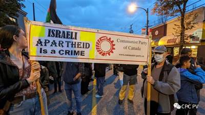 加拿大共产党与巴勒斯坦人民站在一起,抵制犹太复国主义,反对美国、加拿大以及欧洲帝国主义,以色列政府在这场战争中犯下了罪行,包括以色列平民也付出了代价,犹太复国主义的罪行必须得到清算,并且必须结束这场种族灭绝,作为通往和平之路的第一步。